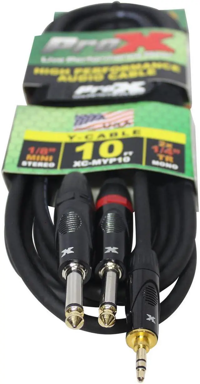 The ProX XC-MYP10 is ideal for professional touring and live sound applications where a device with a 3.5mm Mini TRS-M output/input needs to be connected to a device with a Dual 1/4" TS-M output/input connections.