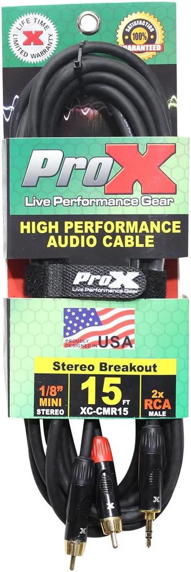 Bring your audio experience to a new level with the ProX XC-CMR15 High-Performance Audio Cable. This 15' 1/8" (3.5mm) TRS to Dual RCA-M cable is specifically designed for professional touring and live sound applications, offering a reliable and quality connection between devices with a Mini 1/8" TRS-M Stereo output/input and those with a Dual RCA output/input.