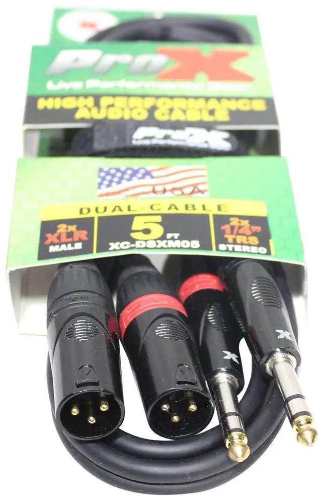 The ProX XC-DSXM05 is a Dual 1/4" TRS-M to Dual XLR3-M 5Ft. cable, made for perfect quality sound and is ideal for professional touring and live sound applications where a device with a dual TRS-M output/input needs to be connected to a device with a dual XLR3-M output/input. 20AWG Oxygen-Free Copper (OFC) conductors for maximum signal transfer.