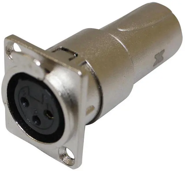 The XC-3FDM XLR Adapter features a 3-pin XLR female connector on the panel side and a 3-pin XLR male connector on the back side. This design allows for seamless conversion from a female to a male XLR connector, making it an ideal tool for a variety of audio applications. One of the standout features of this adapter is its ease of setup. It eliminates the need for soldering connectors, allowing for quick and efficient setup of a blank patch panel. Simply plug a short cable into the back and attach to the output/input that you want to replicate on the panel.