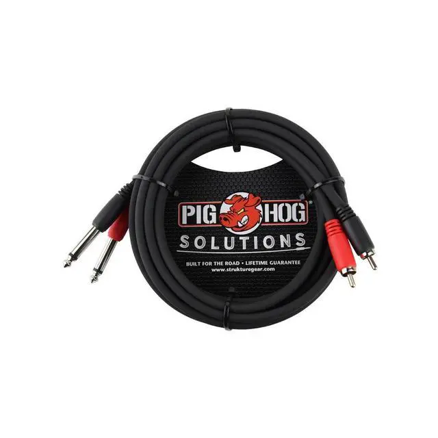Dual cables are a great way to keep track of stereo signals. Pig Hog dual cables feature heavy duty molded connectors with built in strain relief, color coded for easy identification of Left and Right Channels, an extra thick tour grade PVC sleeve.