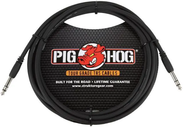 Pig Hog 10ft 1/4" TRS - 1/4" TRS CablePig Hog cables are precisely overbuilt to stand up to the most grueling tour conditions imaginable and are designed to provide the highest quality performance with outstanding value. We understand your cables need to sound great and perform reliably, night after night, without costing you an arm or a leg! That's why we use an extra-thick, yet supple 8mm jacket that resists kinking or tangling. Our proprietary conductor technology and robust shielding is designed to ensure your sound is crystal clear, without noise or interference, every time. Each cable is hand tested before shipment, and we back up our quality with a lifetime warranty so you can be sure your Pig Hog Cables will be an integral part of your rig for years to come.