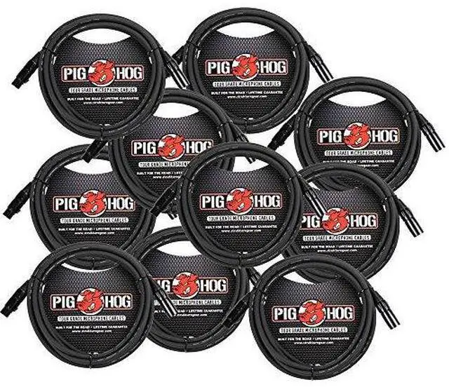 Strukture Pig Hog 8mm Mic Cable 10', Straight Audio, XLR 3-Pin - 10 Pack