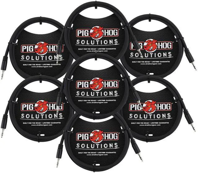 7X PIG HOG SOLUTIONS 3.5MM TRS TO 3.5MM TRS ADAPTER CABLE, 9FTPig Hog Solutions 3.5mm TRS to 3.5mm TRS Adapter Cable, 9ftThe Pig Hog Solutions line features an expanding selection of adapter and cables designed to solve common interfacing problems in the studio and on stage. Each cable is manufactured to Pig Hog's high-quality standards to insure transparent reproduction of the source audio without any coloration or distortion. Pig Hog is designed by musicians, for musicians, combining the highest quality performance with outstanding value. And with Pig Hog's "no question" lifetime guarantee, they've got your back for the life of the cable.