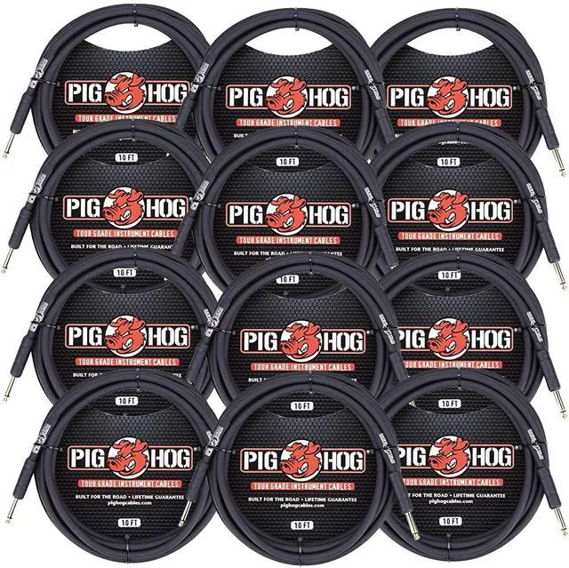 • This Bundle from Teds Electronics includes; 12x Pig Hog Tour Grade 10ft Instrument Cable 1/4 Inch to 1/4 Inch Straight Connectors Black - PH10