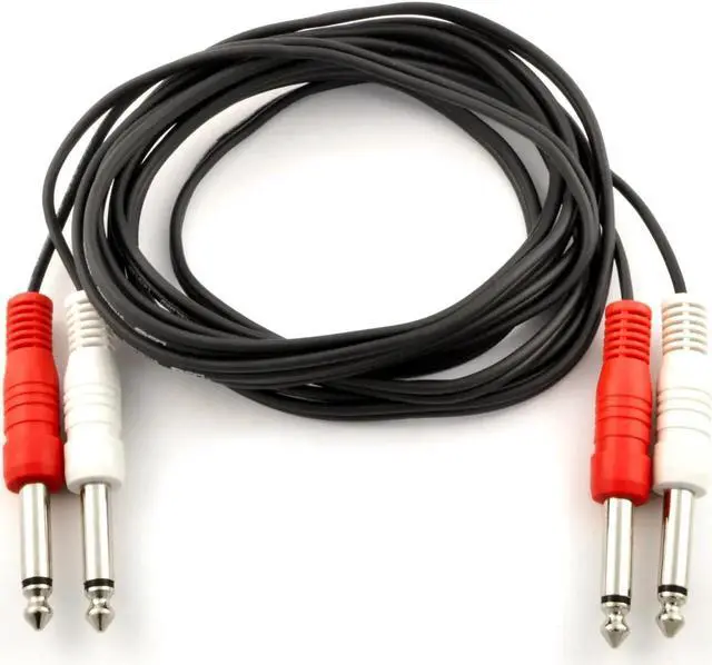 Stereo Interconnect Dual 1/4-Inch TS to Dual 1/4-Inch TS Audio Speaker Connector Cable Black 10FT