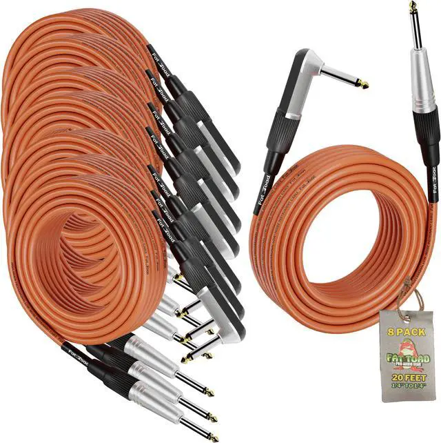 Enhance your audio setup with the Fat Toad (8 Pack) Guitar Instrument Cables, meticulously designed to deliver superior sound quality and reliability for musicians and audio professionals. Each cable in this pack measures 20 feet, providing ample length for flexible positioning on stage or in the studio. Constructed with durable, high-quality materials, these cables feature a robust design with straight ends equipped with 1/4-inch connectors that ensure a secure and stable connection to guitars, basses, keyboards, and other musical instruments. The cables are crafted with oxygen-free copper conductors, enhancing signal clarity and reducing resistance.