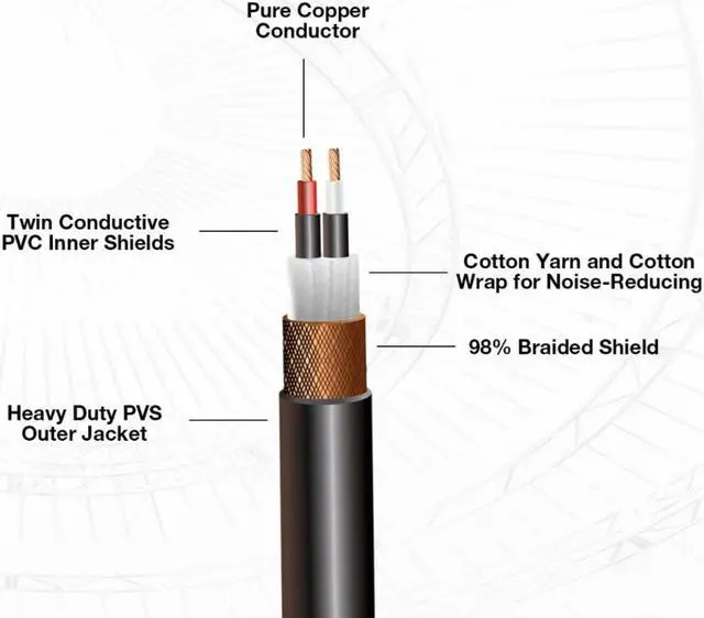 A superior sound cable made for center stage. All your live shows and professional sound recordings, stay connected with the industry's clearest cable from Coluber. This pro-quality connector provides crystal-clear transmission for all your various audio applications, delivering dependable performance no matter the venue's nature. Each piece features twin conductive PVC interior shields, gold-plated connectors, cotton yarn wrap, and a 98% braided shield to reduce noise interference. Whether you're plugging the mic into an audio interface or pairing a mixer with external speakers, rest easy knowing you'll always have the strongest, most reliable hookup and top-quality sound transfer.