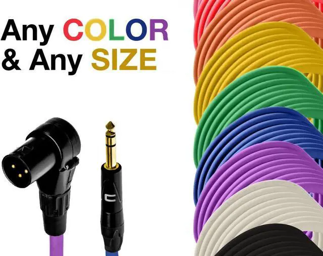 Choose your ideal combination of cable connectors/jack, whether your hookup requires a right angle XLR male, right-angle XLR female, ¼" TRS, or some other arrangement. Then, select your preferred color and length options, and enjoy a custom connector designed specifically for your audio needs.