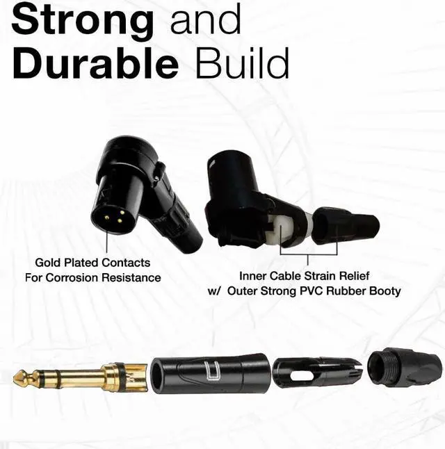 Our cord connector suits various audio setups like mic, stereo speaker, pedalboard, acoustic guitars, PC, etc. A dependable choice for live stage performance, studio recording, school & church PA Systems, and more.