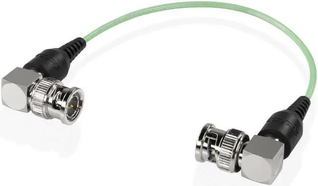 Thin and high-quality 90-degree male to male BNC cable designed to support the transfer of both serial data and video signals