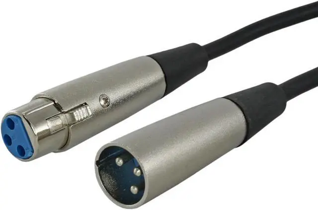 6ft cable with a male XLR plug on one end and a female XLR plug on the other end. Quality balanced and shielded cable and each connector is completely sealed and molded. Professional, Flexible and Durable Noise Free XLR Cable. BALANCED AND SHIELDED. In stock ready to ship. This is a standard mic cable also commonly used in many DMX lighting applications. Some installs may require actual high dollar DMX cabling (or at least very high end mic cabling) while most many applications seem to work fine with standard grade mic cable so it is up to the installer to decide what each particular install requires.