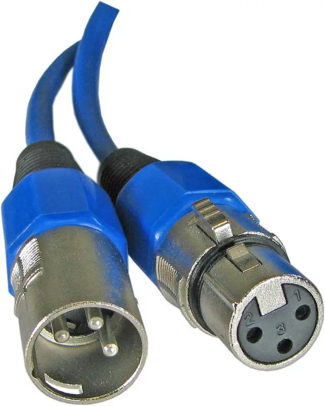 These are 15ft cables with a male XLR plug on one end and a female XLR plug on the other end. These are quality balanced and shielded cables and each connector is completely sealed and molded. These are Professional, Flexible and Durable Noise Free XLR Cables. BALANCED AND SHIELDED. In stock ready to ship. These standard mic cables are also commonly used in many DMX lighting applications. Some installs may require actual high dollar DMX cabling (or at least very high end mic cabling) while most many applications seem to work fine with standard grade mic cable so it is up to the installer to decide what each particular install requires.