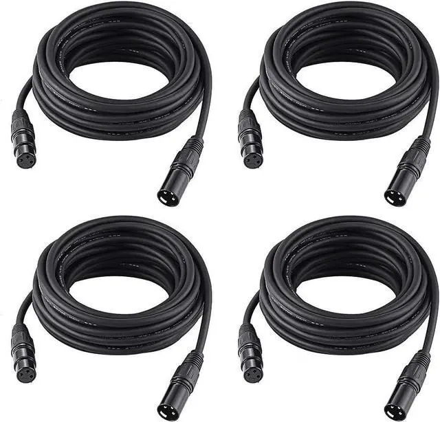 25ft / 7.62m DMX Cable, 4 Packs 3 Pin DMX Cables DMX Wires, DMX512 XLR Male to Female Stage Light Signal Cable with Metal Connectors, Connection for Stage & DJ Lighting fixtures