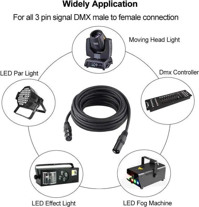 Wide ApplicationThis dmx light cable ideal for all fixtures with DMX512 signal, you can use for connect moving head light, led par light, effect light and other stage, audio & dj lighting fixtures.