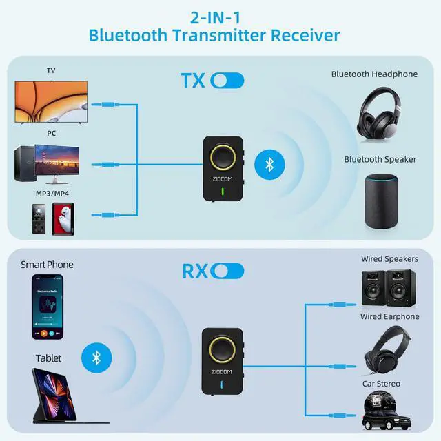 ZIOCOM 2-in-1 Bluetooth Transmitter and Receiver