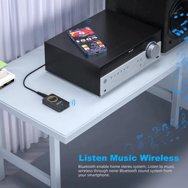 Switch to RX for Bluetooth receiver function: Turn your non-Bluetooth speakers, headphones, home stereo systems into Bluetooth devices. Listen music through your perfect sound system from your smartphone or tablet.