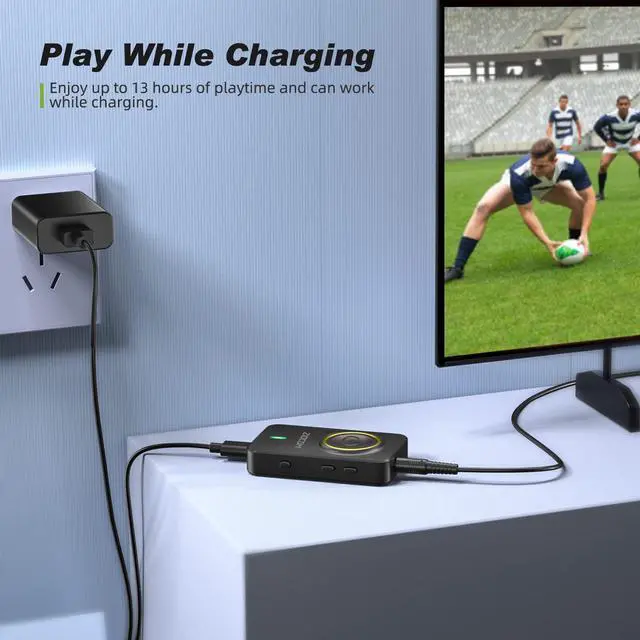 Switch to TX for Bluetooth transmitter function: Plug it into No-Bluetooth devices like TV, PC, MP3 via 3.5mm AUX or RCA cable and transmits audio to Bluetooth headphones/speakers/ soundbars. It is a great solution for listening to TV at night without disturbing other family members.