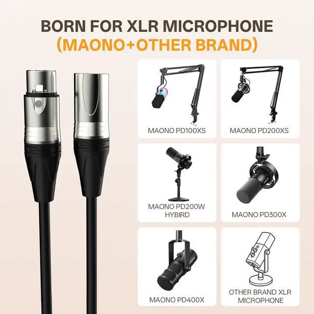 Maono XLR Male to Female Cable is meant to record your original voice and make it heard clearly. Well constructed, the XLR Mic Cable protects the audio signal against interference and offers noise-free, lossless and undelayed sound. Ideal for studio recording, live concert, live playing, broadcasting, public speaking.