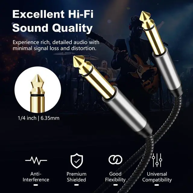 - Professional Audio Cable: Built with high-purity oxygen-free copper conductors and multi-layer shielding, it effectively blocks external electromagnetic interference, eliminates background noise and crosstalk, and restores pure, rich instrument sound to meet the acoustic demands of professional musicians.