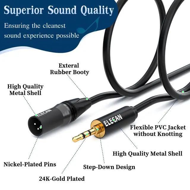 ![]() Elecan 6.35mm (1/4 Inch) TRS to XLR Cable 25 Ft Male to Male-Balanced Shielde... | ![]() Elecan 3.5mm (1/8 Inch) TRS to XLR Cable 4 Ft Male to Male-Balanced Shielded ... | ![]() Elecan 6.35mm (1/4 Inch) TRS Male to Dual XLR Male Y Splitter Stereo Breakout... | |