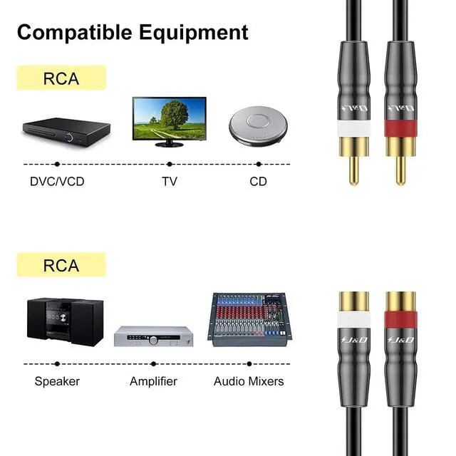 Universal Compatibility: Designed for RCA-enabled devices including stereo receivers, speakers, and amplifiers, providing versatile connectivity options