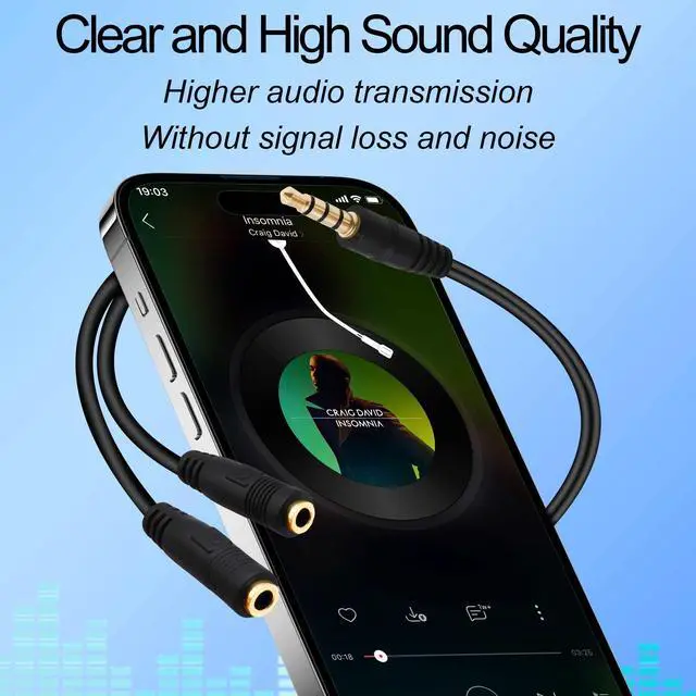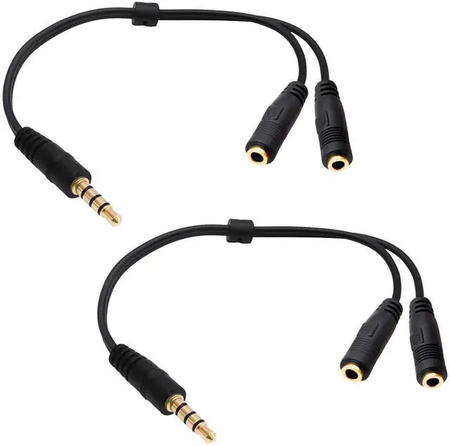 3.5mm 1 male to 2 female splitter cable is lightweight and compact, easy to store and carry,very suitable for travel use NoteIt does not compatible the microphone function of IOS earphones.