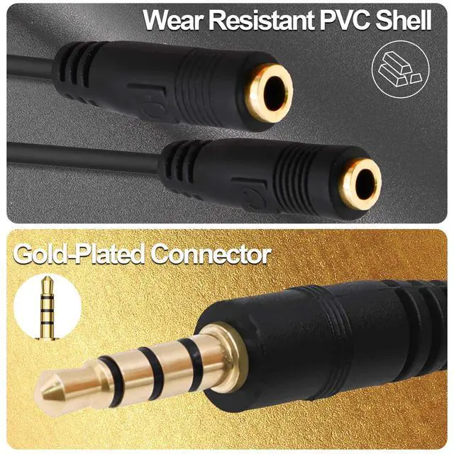 3.5mm trrs splitter extension cable is built to last forever. Aluminum alloy casing and gold-plated plugs significantly enhance the durability for a longer lifespan.PVC shell is strong enough to withstand any twist, tug, and tangle