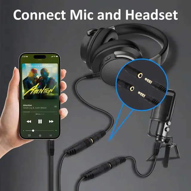 This 3.5mm Headphone TRRS Splitter Y Extension Cable is suitable for devices equipped with a standard 3.5mm audio jack.Converts a single 4-Pole TRRS 3.5mm audio male jack into 3.5mm Mic and headphone ports,allowing you to connect headphones with separate microphone and audio jacks to a single audio port.