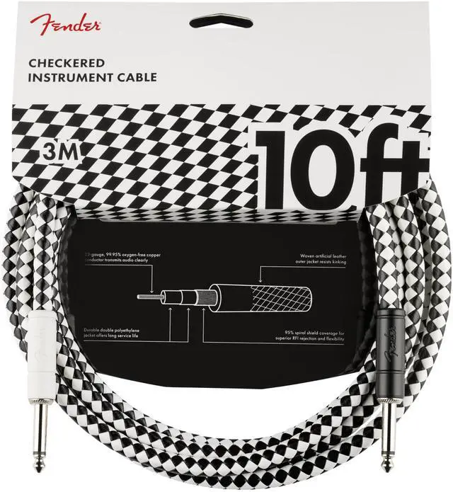 The Fender Checkerboard Instrument Cable features a woven artificial leather jacket and custom molded ends. Sporting quiet and resilient spiral shielding, these cables are engineered to avoid twisting, kinking and any physical memory. On stage or in the studio, plug in and play with creative confidence and peace of mind.