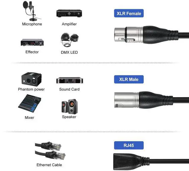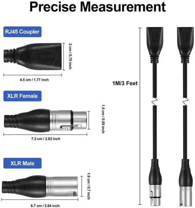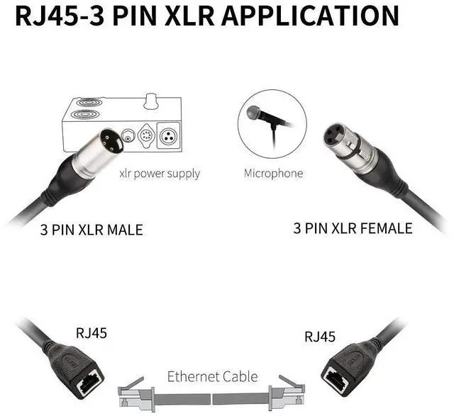 - Connector: RJ45 to 3 Pin Male XLR, RJ45 to 3 Pin Female XLR