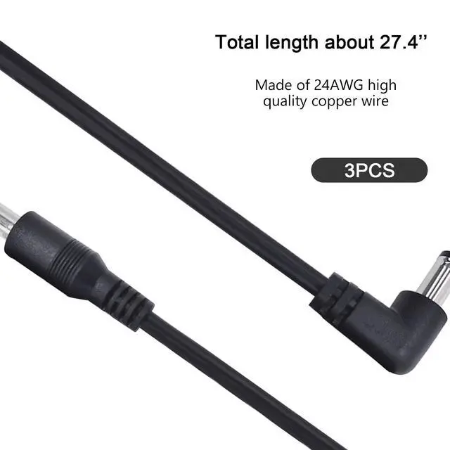 2.One right angle (for your effect pedal DC in) and one straight jack (for your effect pedal power DC out).