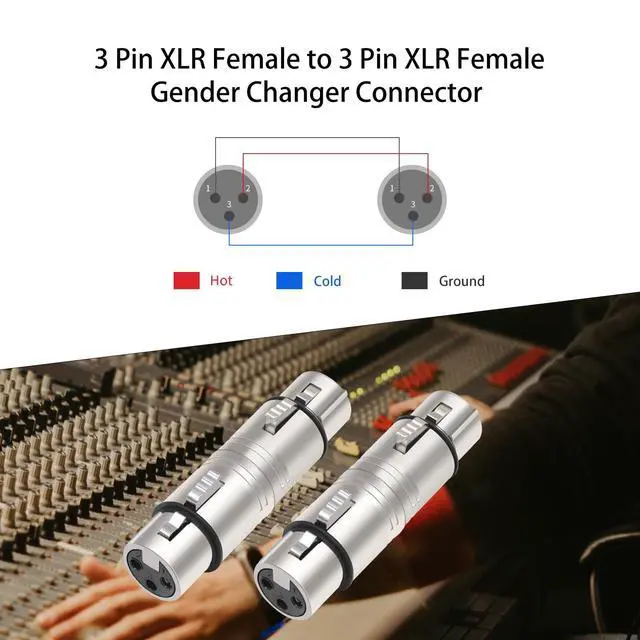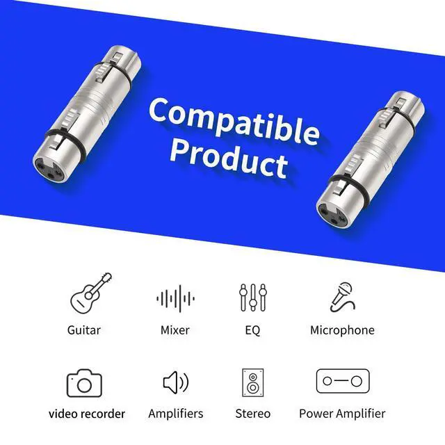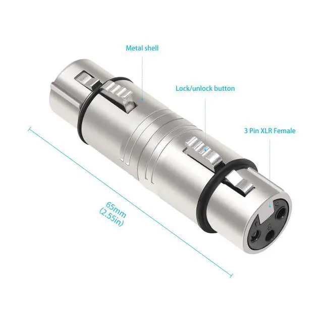 Dual XLR Female to Female Design: The 2-pack includes two XLR female to female adapters, allowing you to easily convert interfaces between mixers, microphones, and DMX lighting equipment without compromising on sound quality or functionality