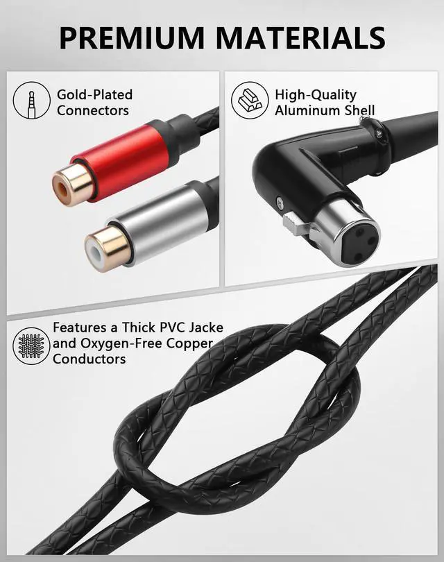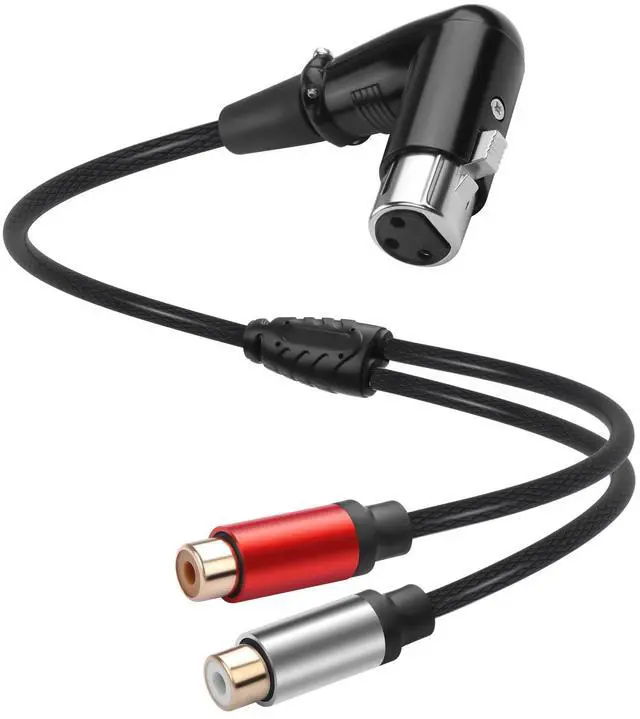 The 90Degrees XLR Female to Dual RCA Female Adapter is designed for maximum system flexibility. Unlike fixed cables, this adapter allows you to use your preferred length and quality of standard RCA cables to complete the connection from your professional XLR-output gear to consumer RCA-input devices. The 90-degree XLR connector is particularly valuable in permanent installations or tight spaces where traditional straight connectors would cause cable strain or require excessive clearance.