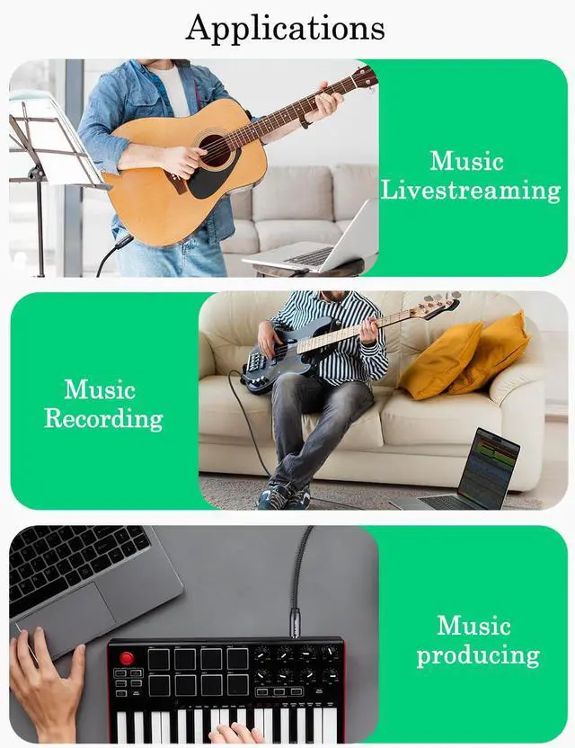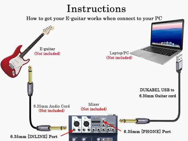 Works with kinds of instruments devices with 1/4 inch Mono phone output, such as: Guitar, Bass, Keyboard, Mixer, Amplifier