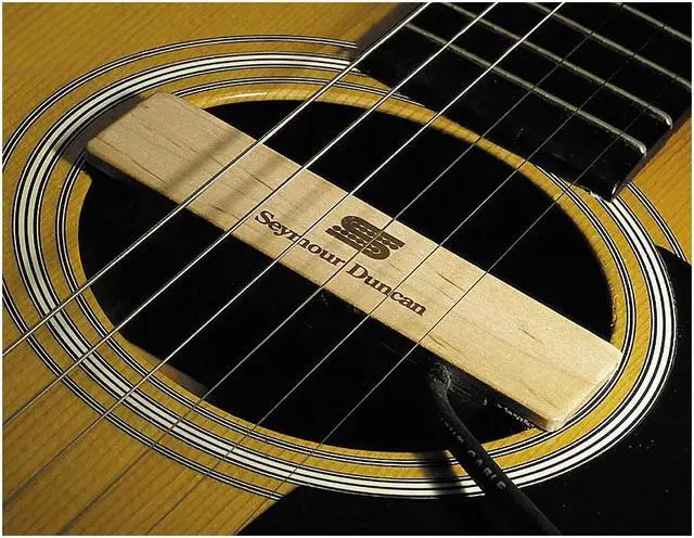 The Seymour Duncan Woody HC Hum-Canceling Soundhole Pickup uses Stack technology to deliver full-bodied tone without noise or hum and fits any acoustic guitar with a soundhole diameter of 3.85" to 4.1". If you have to play near neon signs or fluorescent lights, the Woody HC is the Seymour Duncan pickup to get for your acoustic guitar.