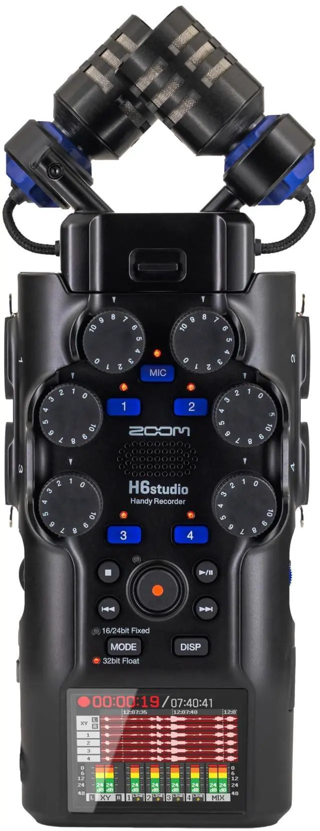 Zoom H6studio Handy Recorder with 32-Bit Float, Gain Knobs, 8-Track Recorder, Large 19.4 mm Microphone, Interchangeable Capsules, F-Series Preamps, USB Audio Interface, for Filmmakers, Musicians & More