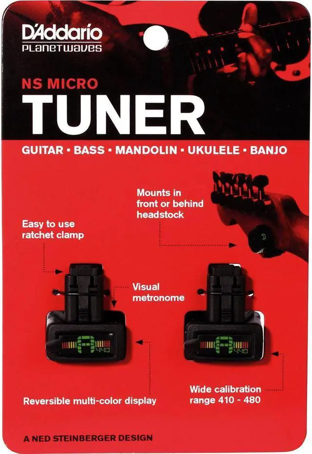 The robust ratchet clamp of this portable tuner securely attaches to the headstock of your instrument, providing stability and reliability during performances. Despite its small size, this durable tuner delivers exceptional accuracy, making it an indispensable tool for every musician. The D'Addario NS Micro Chromatic Headstock Clip-On Tuner is not just a tuner; it's a testament to D'Addario's commitment to providing high-quality, reliable, and convenient solutions for musicians worldwide. Whether you're a professional musician or a beginner, this tuner is designed to help you keep your instrument in perfect pitch at all times.