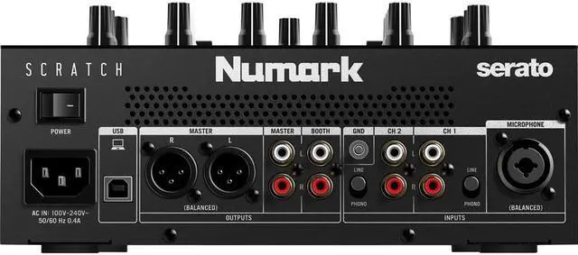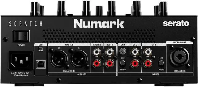 Connectivity is versatile and pro-ready, with balanced XLR outputs, RCA booth out, phono/line inputs, and a combo mic input with tone control. The Numark Scratch is perfect for DJs who want pro features and bulletproof build quality without breaking the bank.