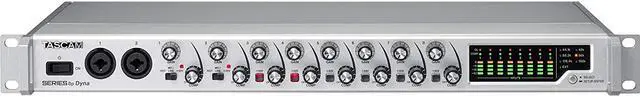 A Superior Front End for Studio and StageTascam has long been known for transparent, natural, ultra-low-noise preamps, and the eight TASCAM no-compromise HDIA (High Definition Instrumentation Architecture) preamps in the SERIES 8p Dyna are its best preamps yet; the noise level (EIN) is at -127dBu, the THD is 0.0007 %, the dynamic range is 116dB, and the crosstalk is 119dB. Each SERIES 8p Dyna channel also features an easy-to-use, single-control analog compressor with true bypass for handling hot input signals and creating smooth audio input. Versatile InputsWith two instrument/microphone combo inputs on the front panel, you can quickly plug in mics, guitars, bass and more.