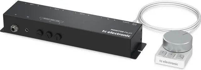 Most pilots are used to going just about anywhere and adapting seamlessly to the destination. MONITOR PILOT is no exception. The most visible part of the system is the remote control, which combines a sleek design with tactile deliciousness and a tiny footprint. In short, it will not take up a lot of desktop real estate and with a solid rubber base, it will sit firmly wherever you decide it should reside. Finally, the single-cable connection keeps your desktop clutter free. The I/O box can be easily mounted on top of your desk, or underneath the table for easy access to the headphones output and 1/8" mini jack input. Since it's also an all-analog solution, the MONITOR PILOT is completely computer independent, making integration an absolute breeze.