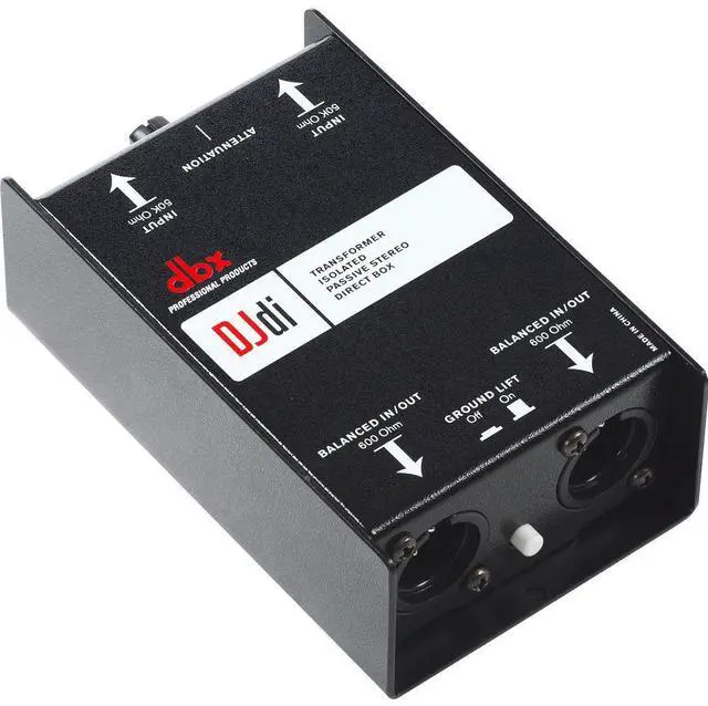 Plug your stereo high-impedance gear into your low-impedance rig with the dbx DJDI 2-Channel Passive Direct Box. Requiring no power supply, the DJDI can conveniently operate in situations where phantom power is not available without needing battery changes to power active electronics found in some DI boxes. A built-in ground-lift switch can help avoid noise from ground loops. Another feature on the DJDI is the input attenuator which prevents overloading from high-level signals.