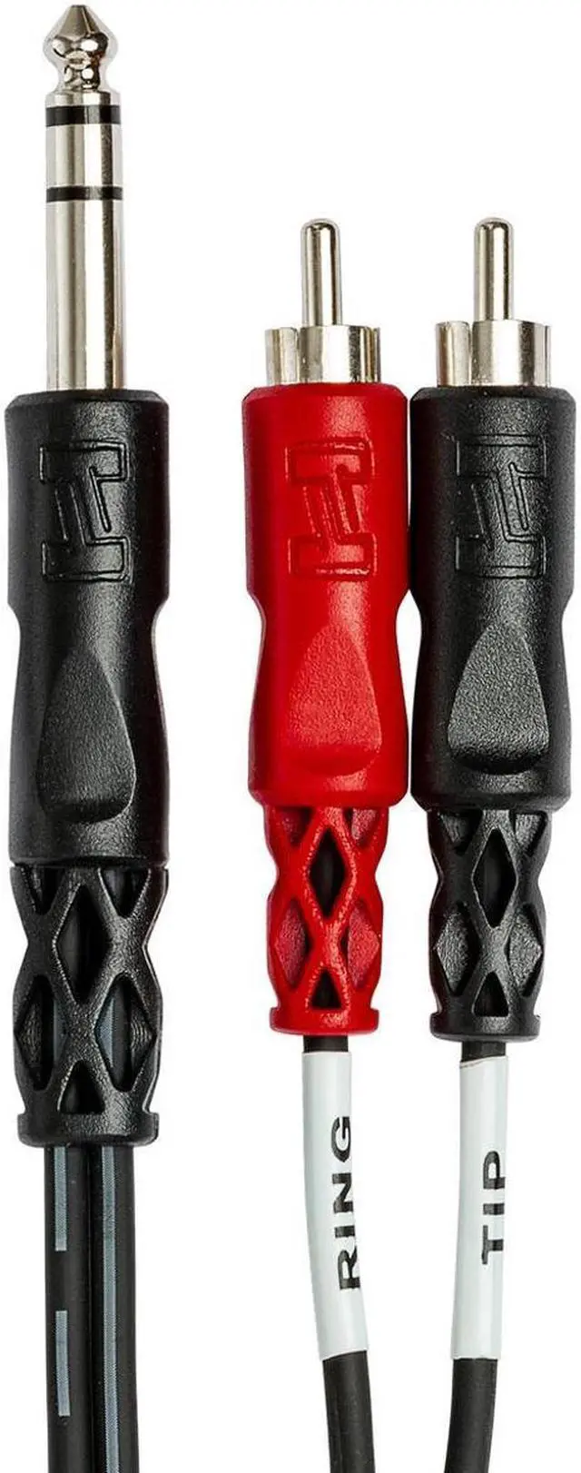 Explore the world of high-quality sound with the 6.6 ' (2M) Stereo 1/4" Male to Two RCA Male Y-Cable. Crafted by Hosa Technology, a leader in the field of professional audio equipment, this durable and reliable Y-Cable is designed to deliver superior audio performance. This flexible and affordable cable features a 1/4" male stereo connector on one end and two RCA male connectors on the other, making it an ideal solution for a wide range of audio applications. Whether you're a musician connecting a mixer to a sound system, a DJ setting up your gear, or an audio engineer linking a digital audio workstation to speakers, this versatile cable is a must-have tool.