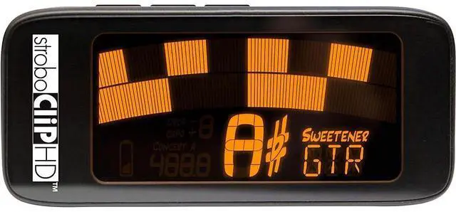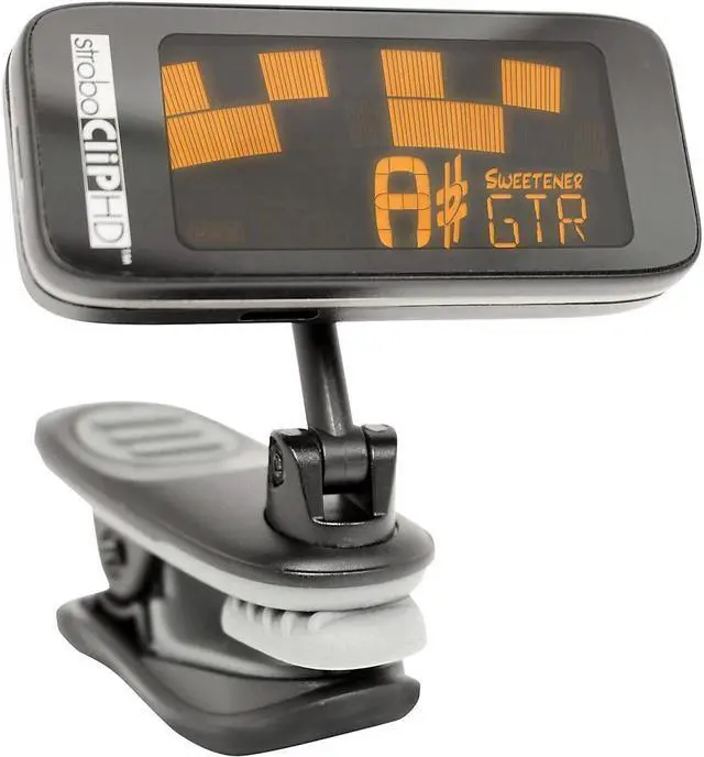 The Peterson StroboClip HD (SC-HD) has the same tenth-of-a-cent accuracy as all Peterson Strobe Tuners. This versatile tuner comes complete with a bright high-definition screen, over 50 Sweetened tunings, alternate temperaments for a vast array of string and wind instruments, and soft rubber-lined jaws to protect your instrument's finish while offering a firm grip for maximum signal tracking.