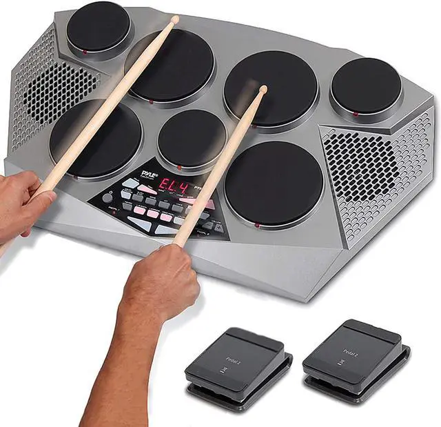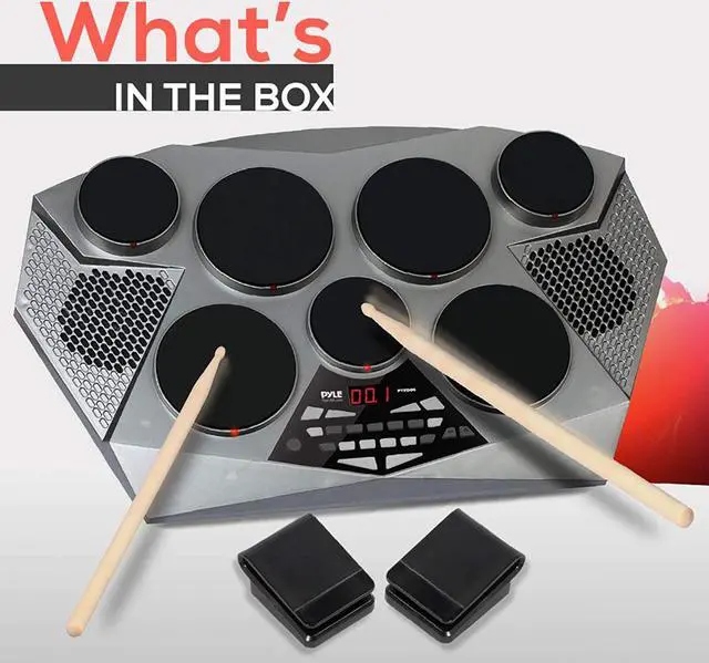 - PRESET DRUM KITS: Pyle portable electric tabletop drum set machine comes packed with 55 preset + 10 custom preloaded drum kits, 300+ cymbal/drum sounds, and it also has a drum trainer learning mode for beginners/starter
