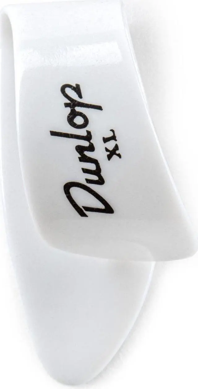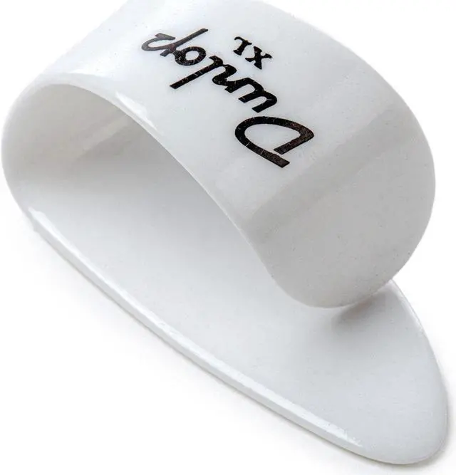 Experience the quality and durability that Dunlop is renowned for with these Extra Large White Plastic Guitar Thumbpicks.