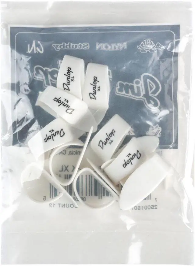 It's time to elevate your guitar playing experience with our Dunlop Extra Large White Plastic Guitar Thumbpicks. This 12-pack of high-quality thumbpicks is designed to provide a warm tonal response and enhanced control, making it an ideal choice for any stringed instrument player. Crafted from durable plastic, these thumbpicks are built to withstand frequent use, ensuring long-lasting performance. The stylish white finish adds a touch of elegance to your musical gear. Versatile and affordable, these thumbpicks are not just for guitarists but can be used on almost any stringed instrument, broadening your musical horizons.
