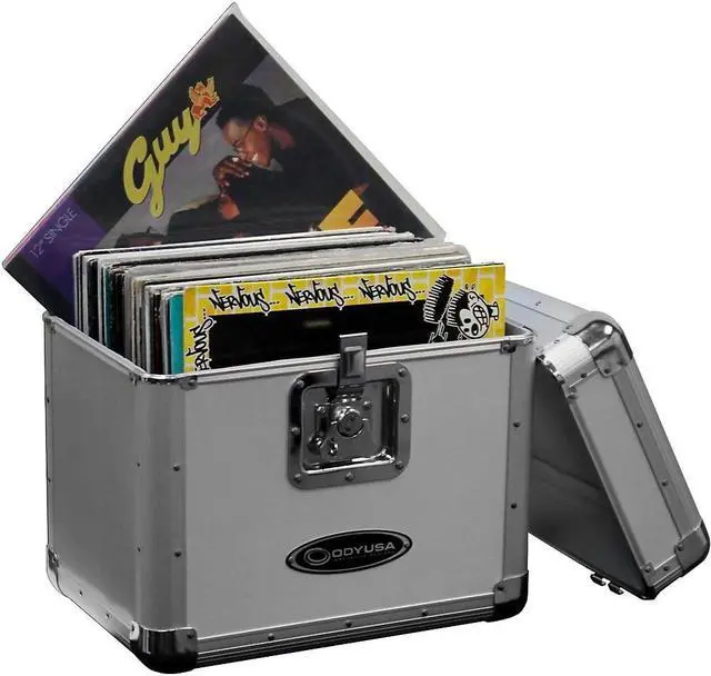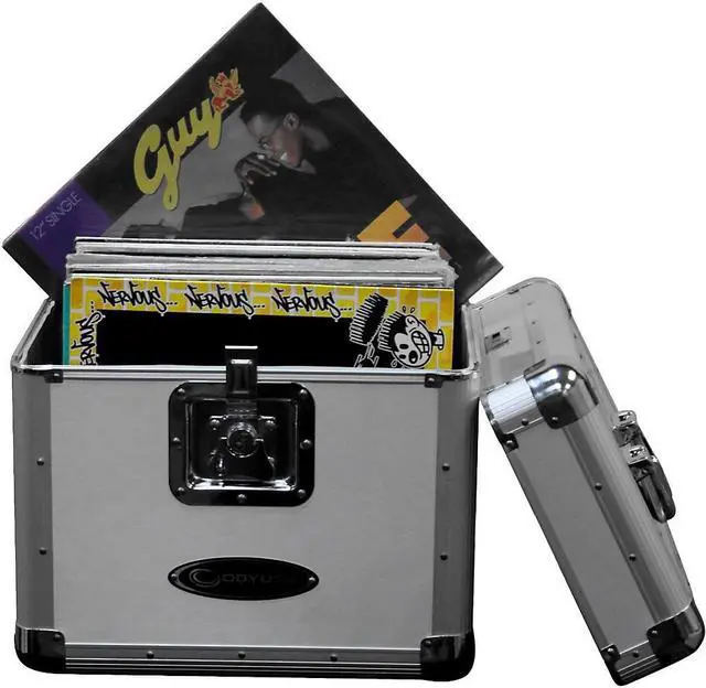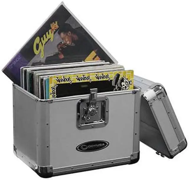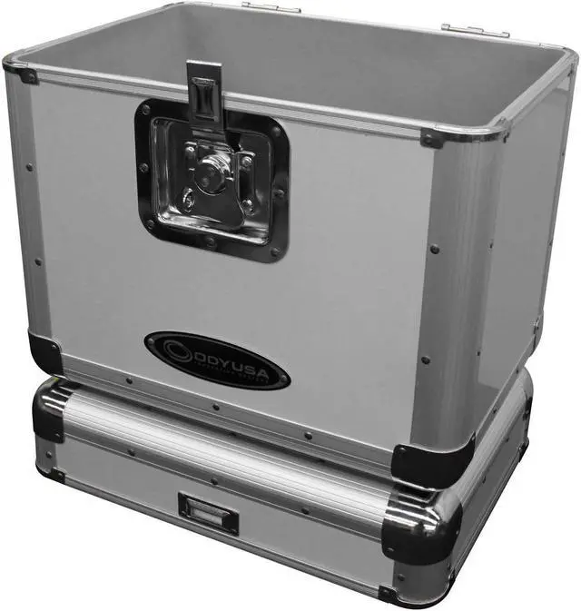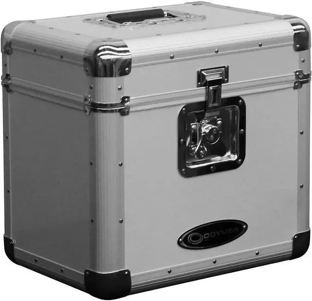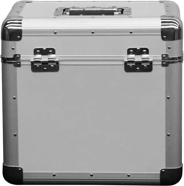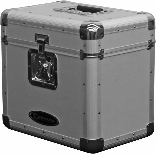 The Krom series KLP2 12" and LP vinyl/utility case holds approximately 70 records in it's fully foam-lined interior compartment. The sleek exterior features a fully removable lid and a lockable butterfly latch, and is designed with four bottom rubber feet and a recessed heavy-duty spring-loaded handle which are essential for secure stacking of the bottom of the case on top of the lid, or one KLP2 case on top of another.