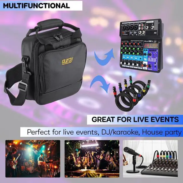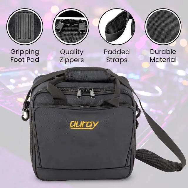 Aurays MXB-1212B padded nylon mixer bag is the perfect solution for transporting a 12 × 12 in. audio, DJ, or podcast mixer to a live show, rehearsal, or remote podcast. This rugged, weather-proof bag is designed to protect your mixer and critical gear against damaging impacts and moisture.