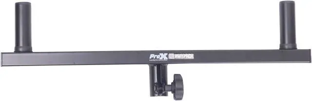 The strongProX X-DS29 strongsafely and conveniently mounts two speaker cabinets to one speaker stand. Constructed from steel, this bracket mounts to most standard speaker stand shafts. It features standard 1 38" inserts and a black powder coat finish. This bracket will allow mounting of two 10" or 12" speakers on a single stand. strongCaution:strong Do not exceed safe loading weights and always protect the stand from tipping.
